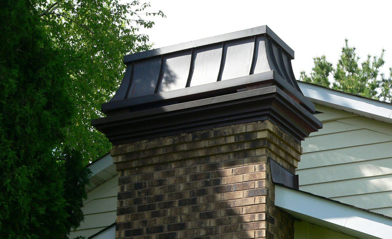 The Faux Chimneys is available in 12 finishes. Black, Dk Bronze, Copper and Stucco are popular neutrals. We also offer over 60 "Kynar 500" colors of Painted Steel to help you perfectly match your homes color scheme. Specialty metals, patinas and stucco finishes are also on our menu. We can even use your material.